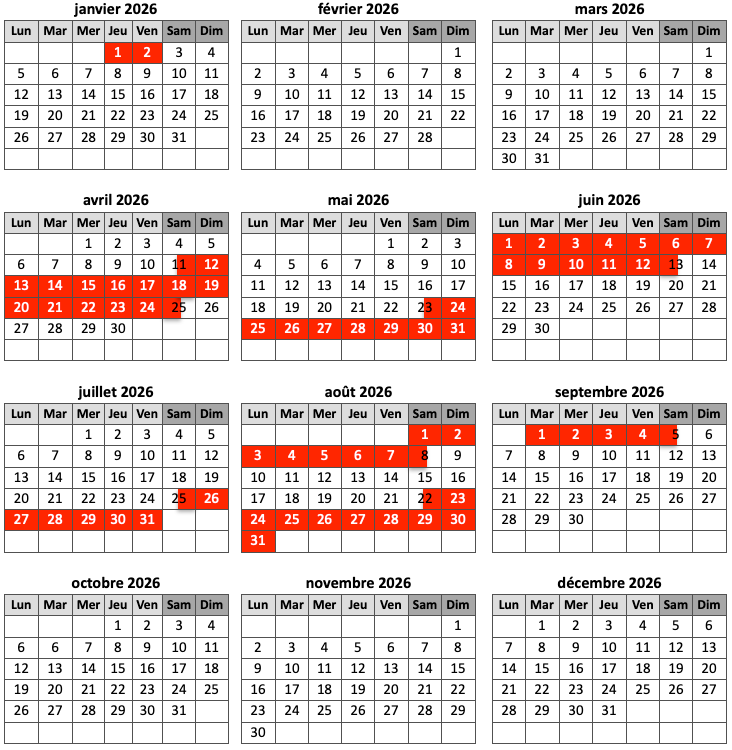 Entre octobre et avril, weekend et midweek possible avec un minimum de 2 nuitées.